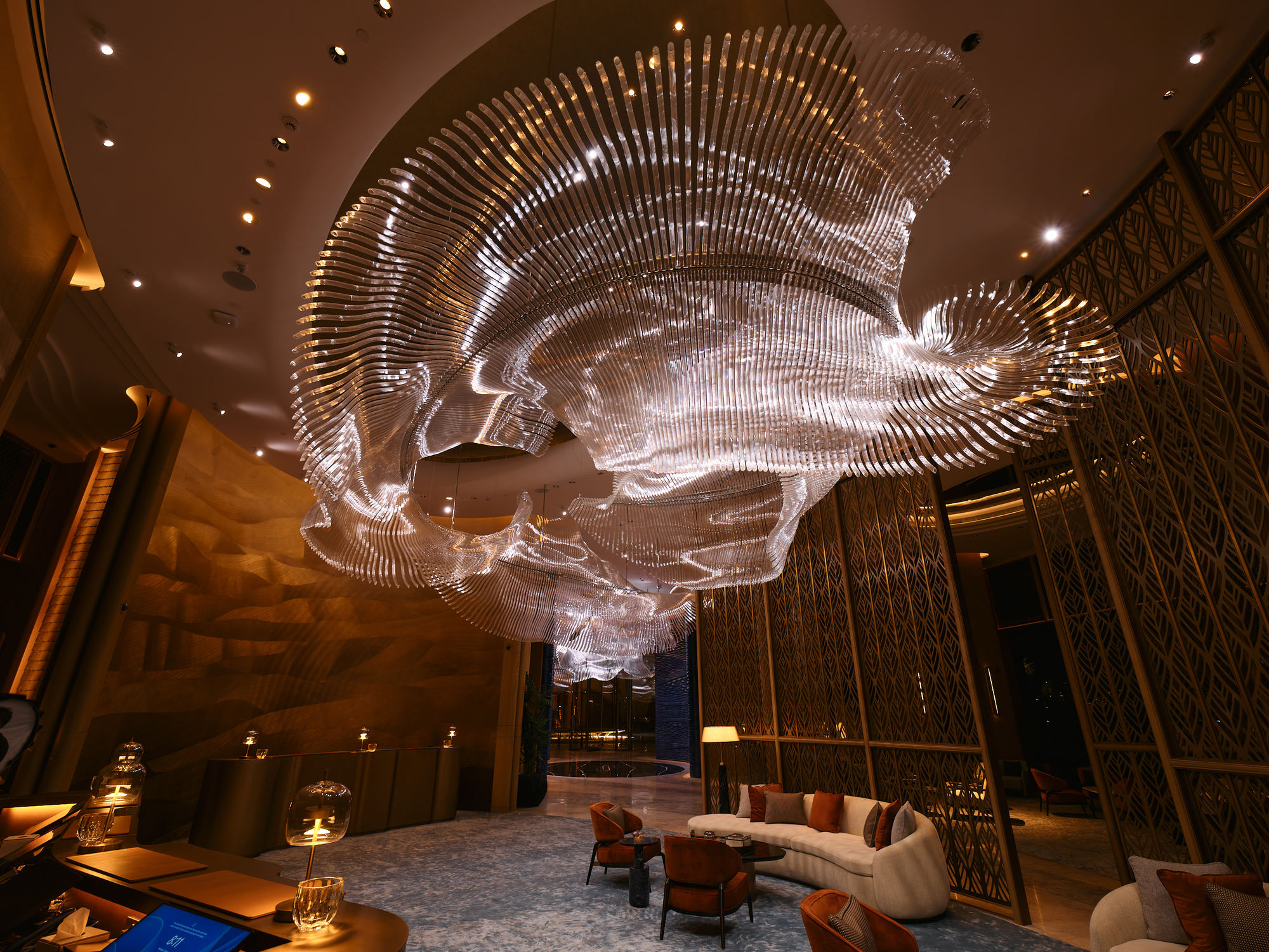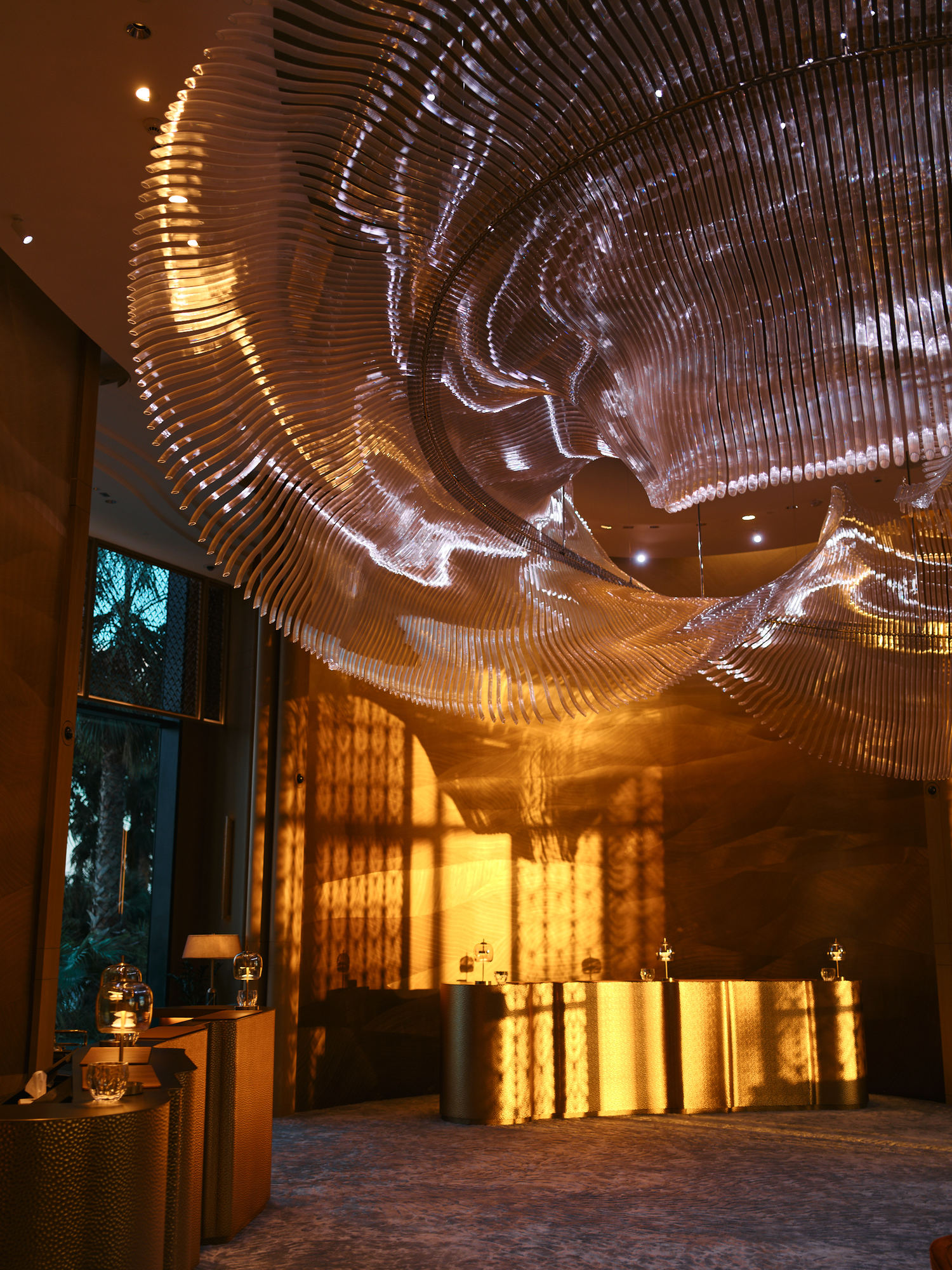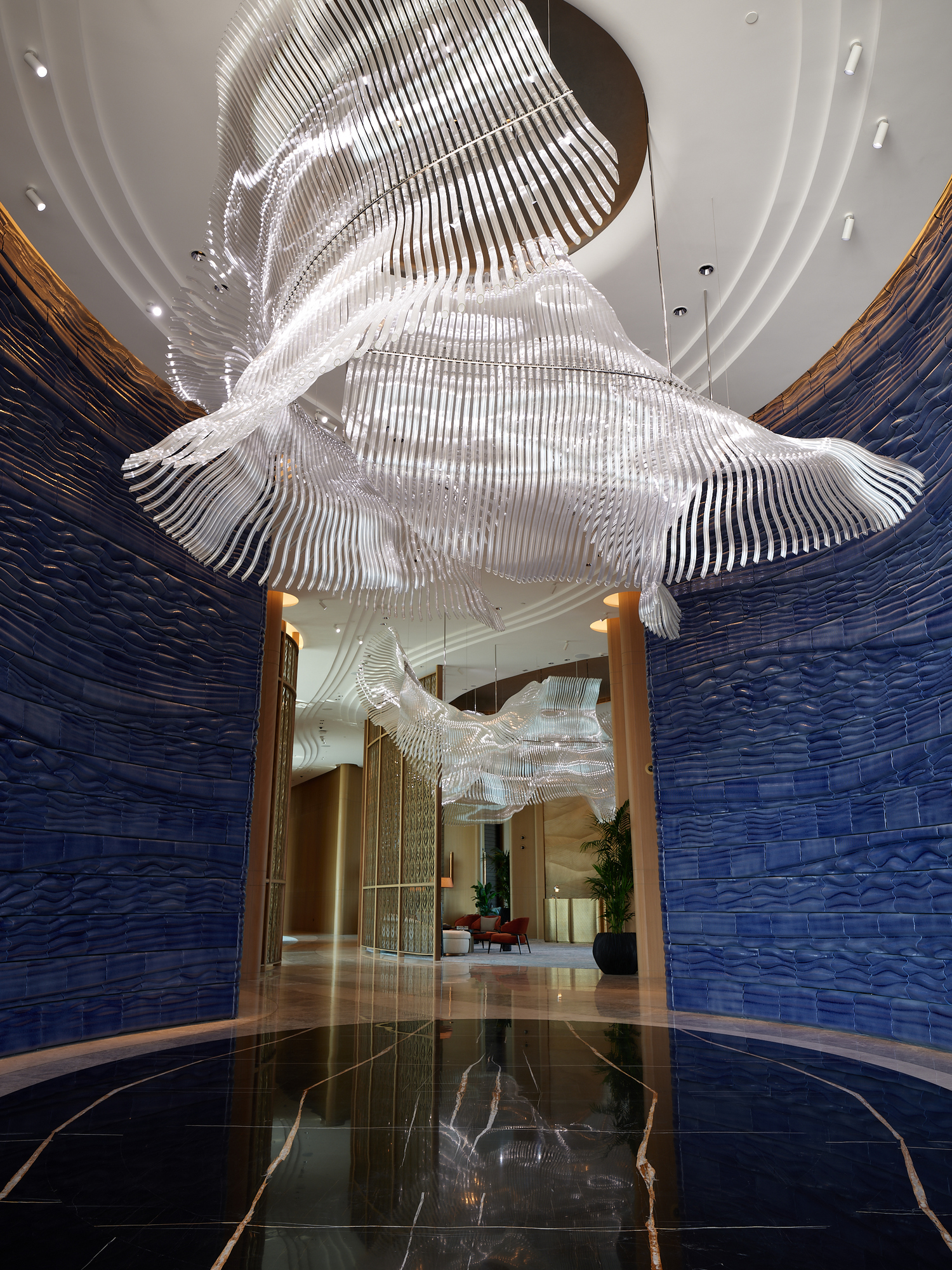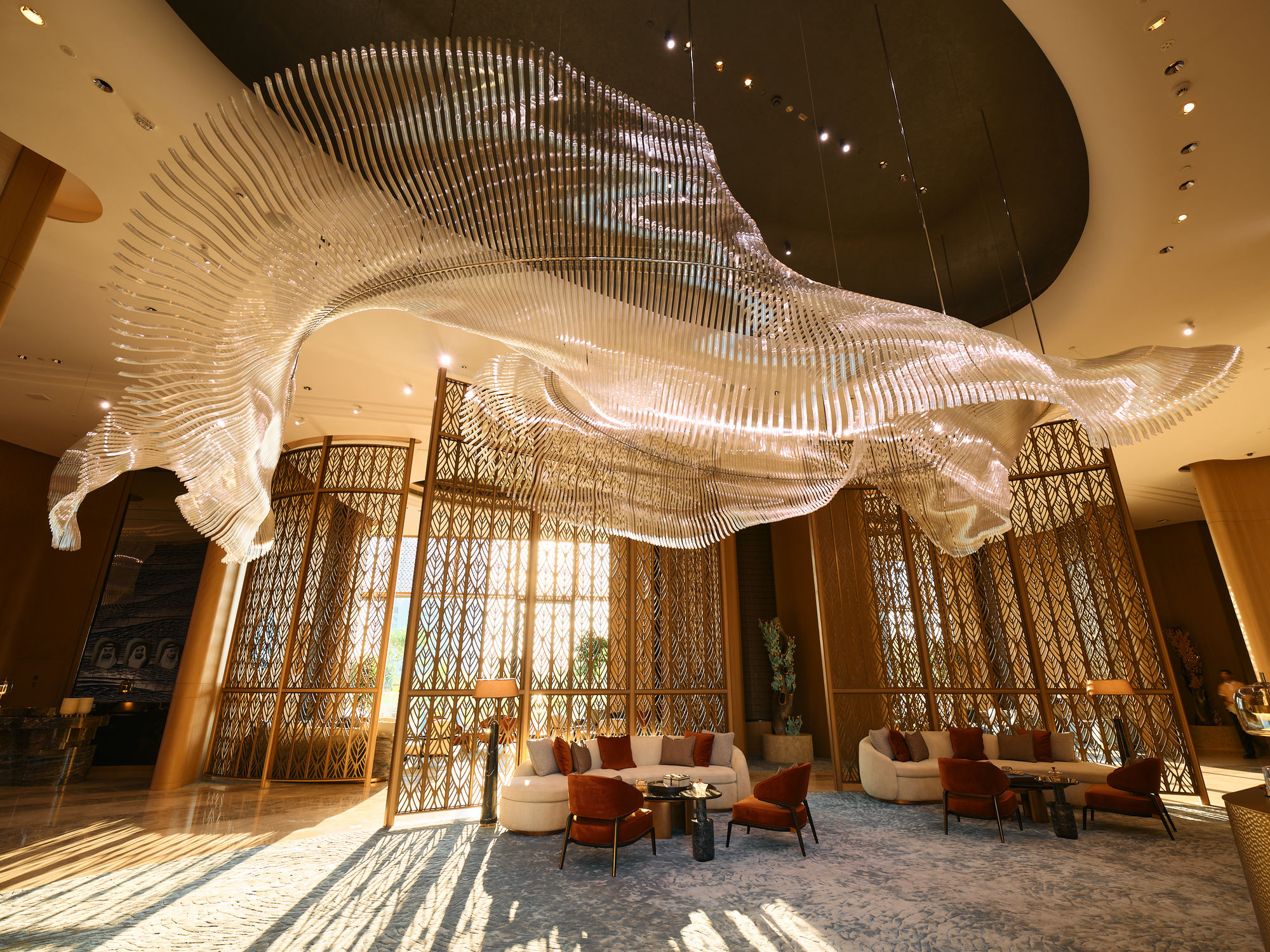 The SEA BREEZE lighting installation is inspired by the gentle winds and elegance of sailing. Designed to capture the sensation of a soft summer breeze flowing through a space, it creates an atmosphere of serenity, warmth and welcoming atmosphere.